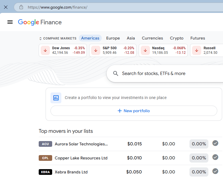 Have you heard of Google Finance 🙂 IT is a special area of google that tracks business performance through stock ticker prices. Arriving around 2005, I began establishing Google Portfolios and tracking stock performance and tracking charts. The site is located at Google Finance.