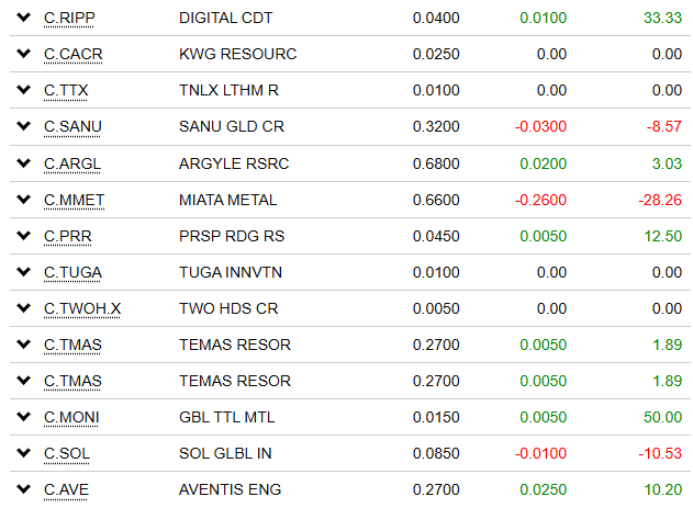 For savvy investors, some of these names will also indicate industry, such as C.RIPP and C.SOL being respective of crypto industries. C.AVE, Aventis ENG can be interpreted as Aventis Energy, and you can read into the symbols and pricing to identify trends.